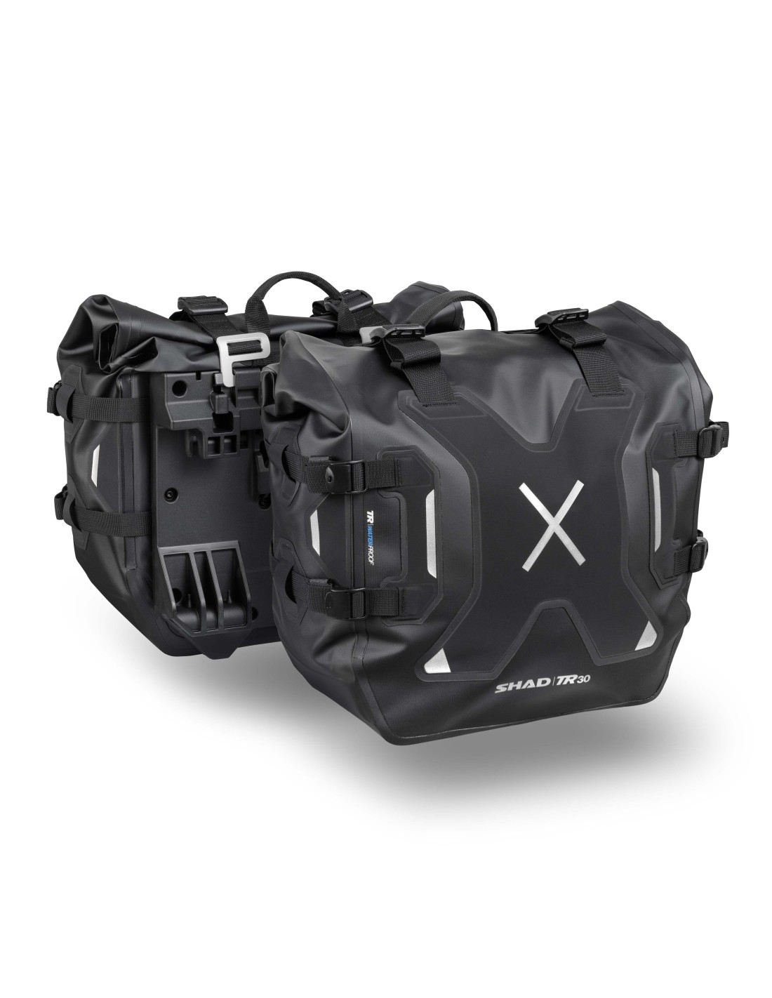 Las alforjas de aventura TR30 destacan por su grado de impermeabilidad IPX6 y su sistema de cierre “Double Locking System” (patent pending), para bloquear la bolsa sobre la fijación 4P y 3P System e impedir, al mismo tiempo, el acceso a su interior.