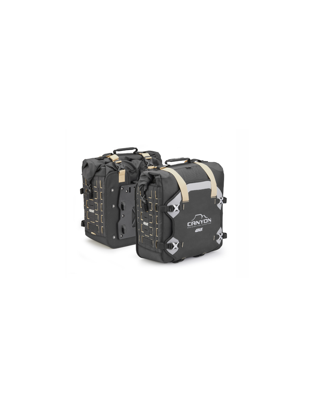 Las trabillas laterales del sistema M.O.L.L.E, ubicadas en los laterales de las bolsas permiten añadir bultos extra, por lo que puede modularse la carga con otros modelos de la gama Canyon, como la bolsa pequeña GRT730, para guardar herramientas, kits de primeros auxilios o dos cantimploras.