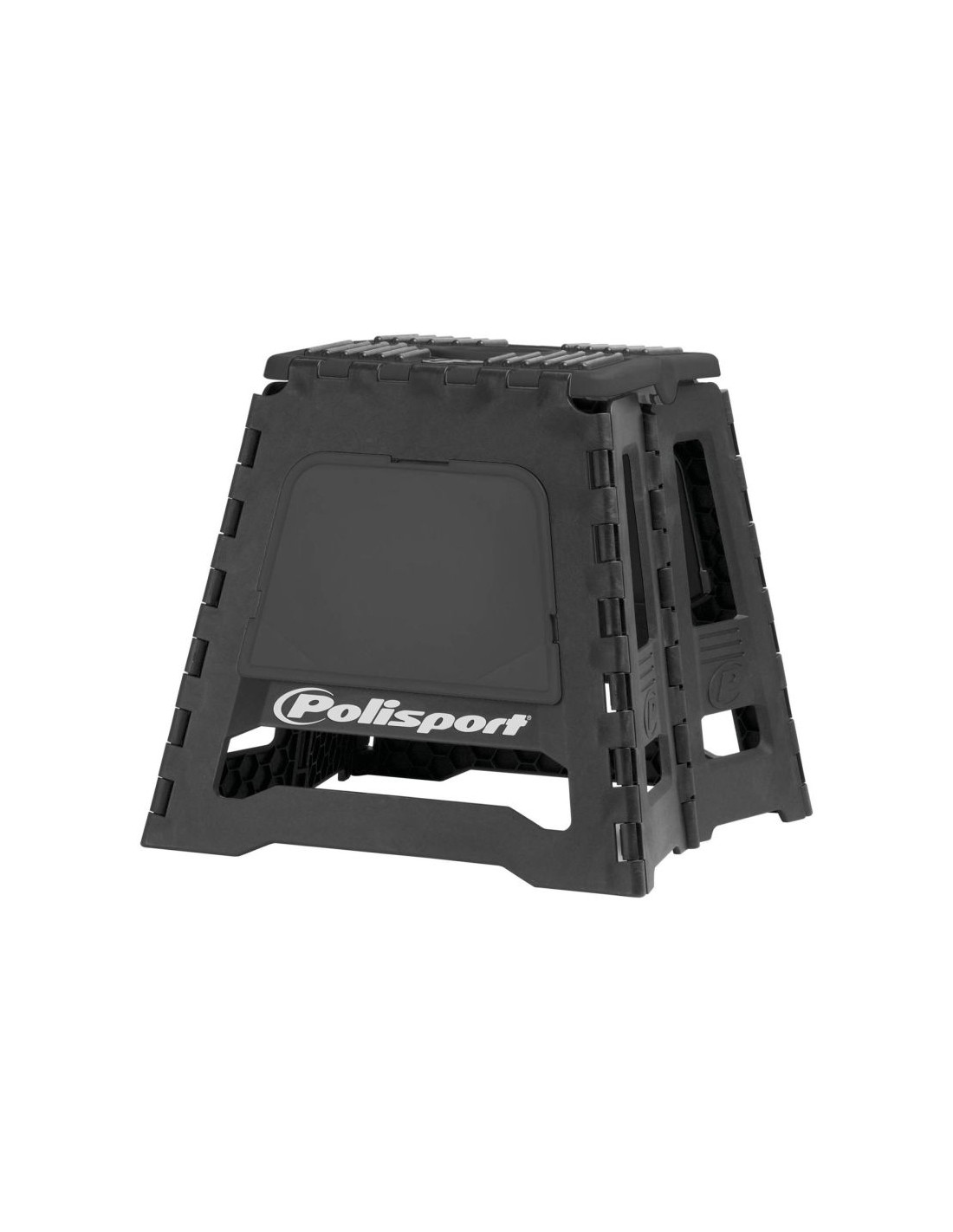 Patentado Hasta 552 libras / 250 kg Diseño plegable Bimaterial: polipropileno y caucho Caucho moldeado por inyección Diseño de alta resistencia No requiere herramientas Ahorro de espacio Fácil de transportar Ligero Decoración: logotipo de Polisport pintado y en relieve Peso: 4300 gr / 9,48 lb Tamaño abierto: 300 mm x 420 mm x 450 mm Tamaño cerrado: 600 mm x 50 mm |