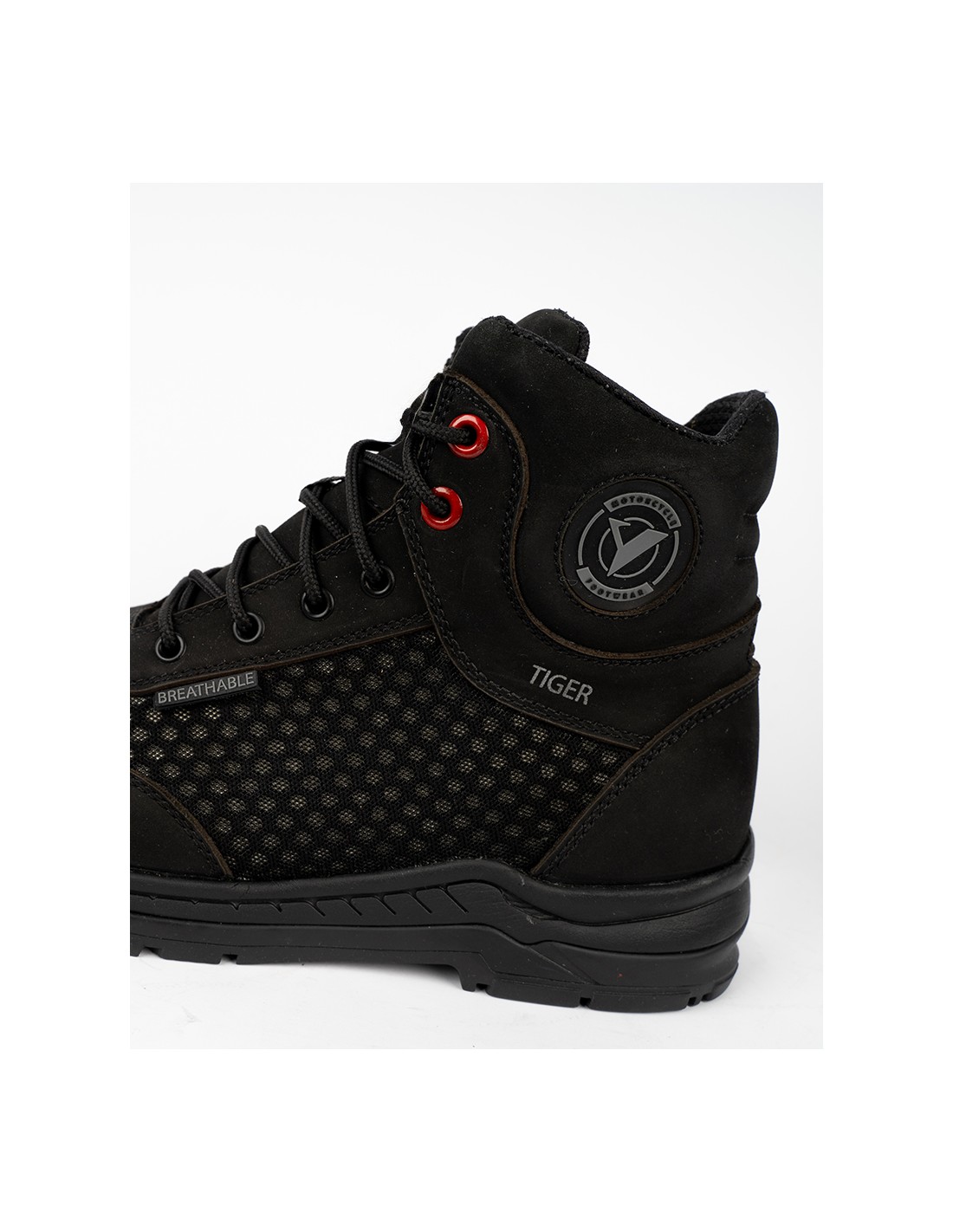• Fabricada en piel y malla de primera calidad, perfecta para la protección contra la abrasión.