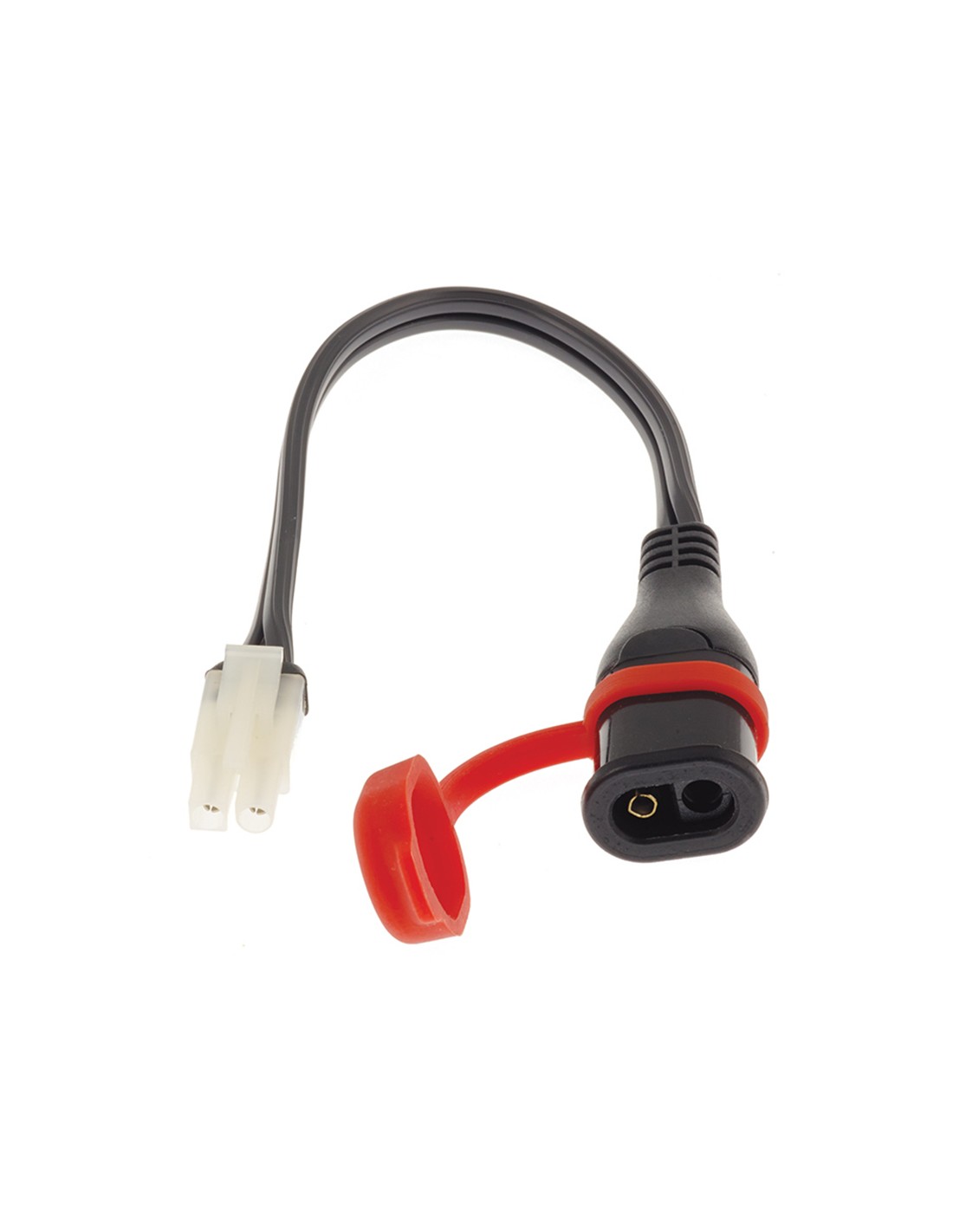 Convierta el cable de su anterior cargador de baterías TecMate o de tipo británico en un conector SAE con manguito y tapón a prueba de salpicaduras.