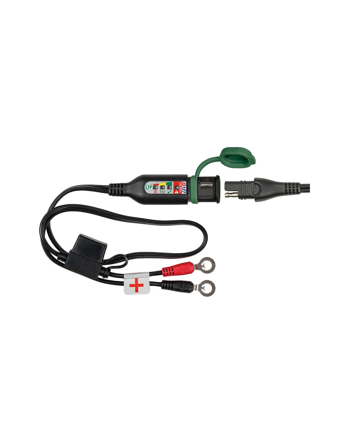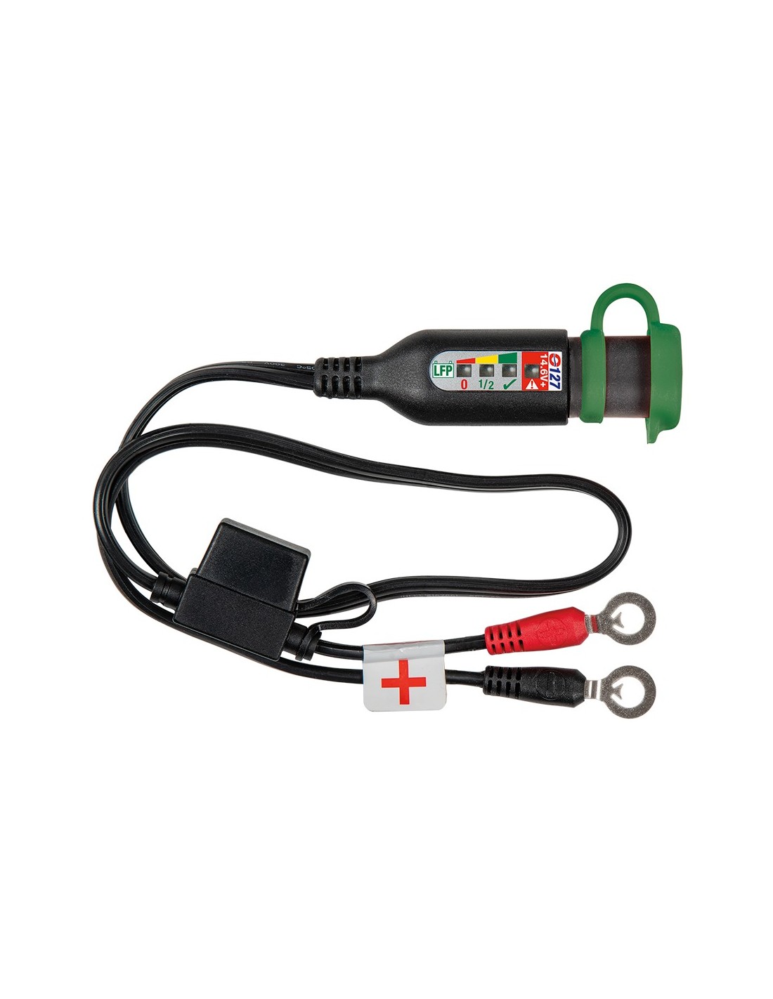 Cable de batería impermeable con monitor de estado de carga para la batería LifePO4/ LFP de 12.8V y 13.2V en su vehículo de rendimiento aparcado – Estado de la batería 24/7 con solo parpadear un LED!