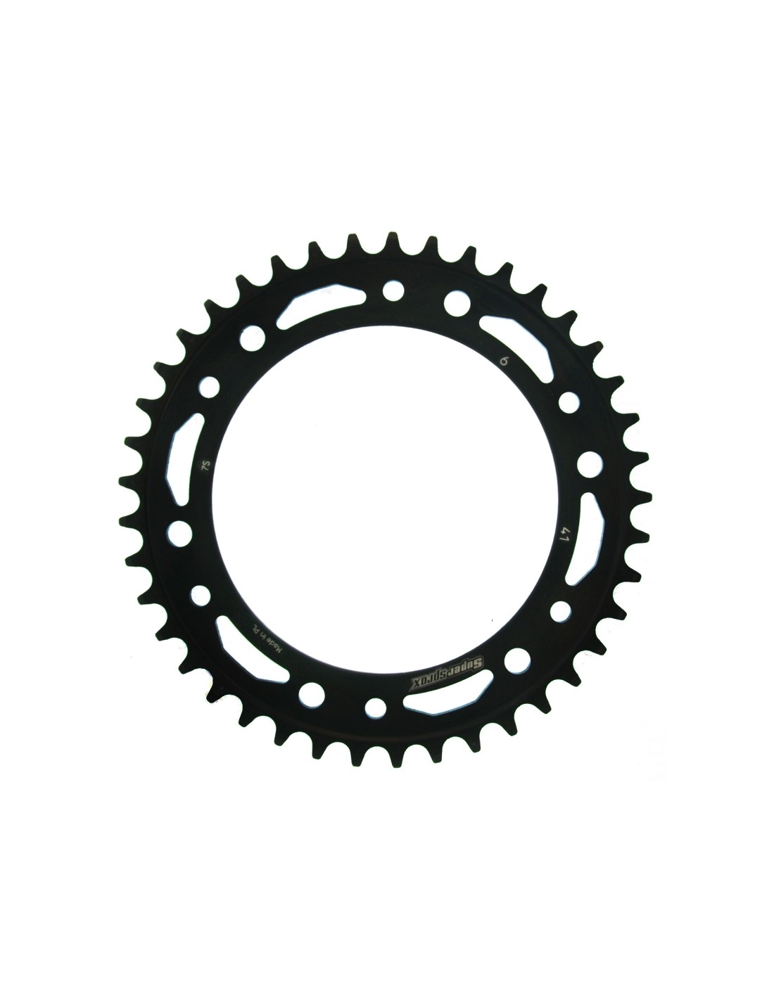Corona en acero de 41 dientes Doblemente perforada con orificios de 10,5 mm y 8.5 mm de diámetro.