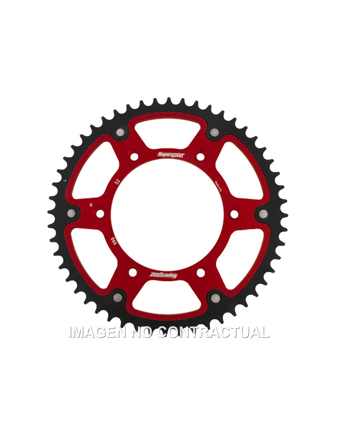 Corona Stealth de color rojo en cuerpo de aluminio y 52 dientes de acero
