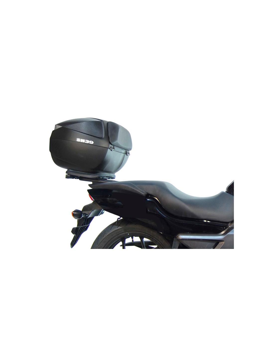 Fijaciones para montar una maleta superior a la moto.