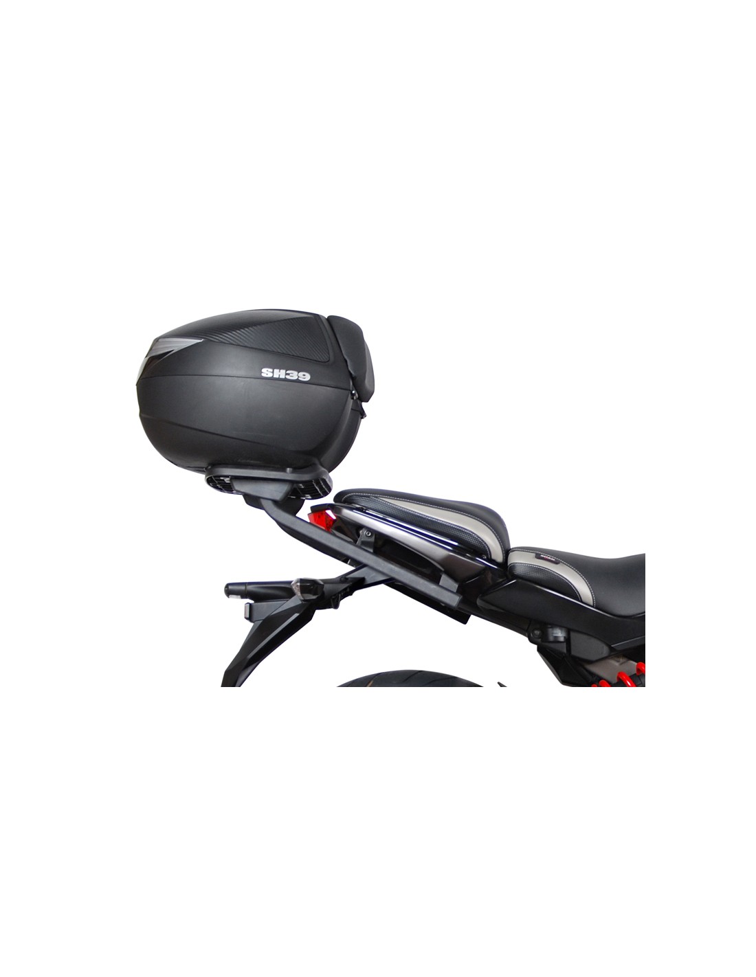 Fijaciones para montar una maleta superior a la moto.