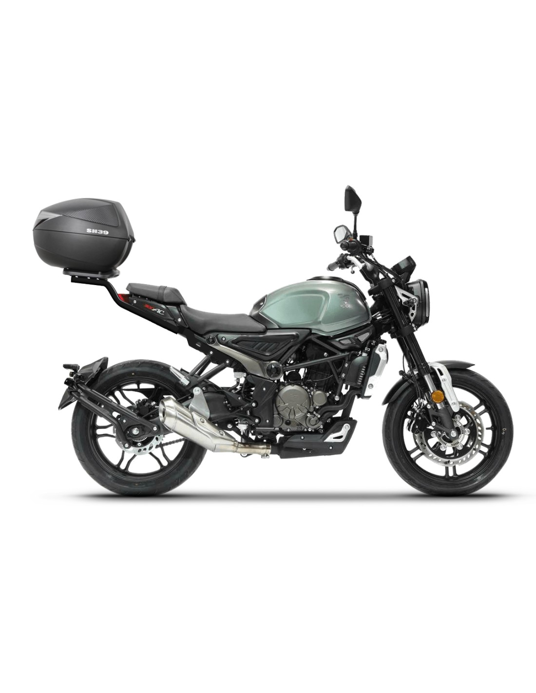 Fijaciones para montar una maleta superior a la moto.