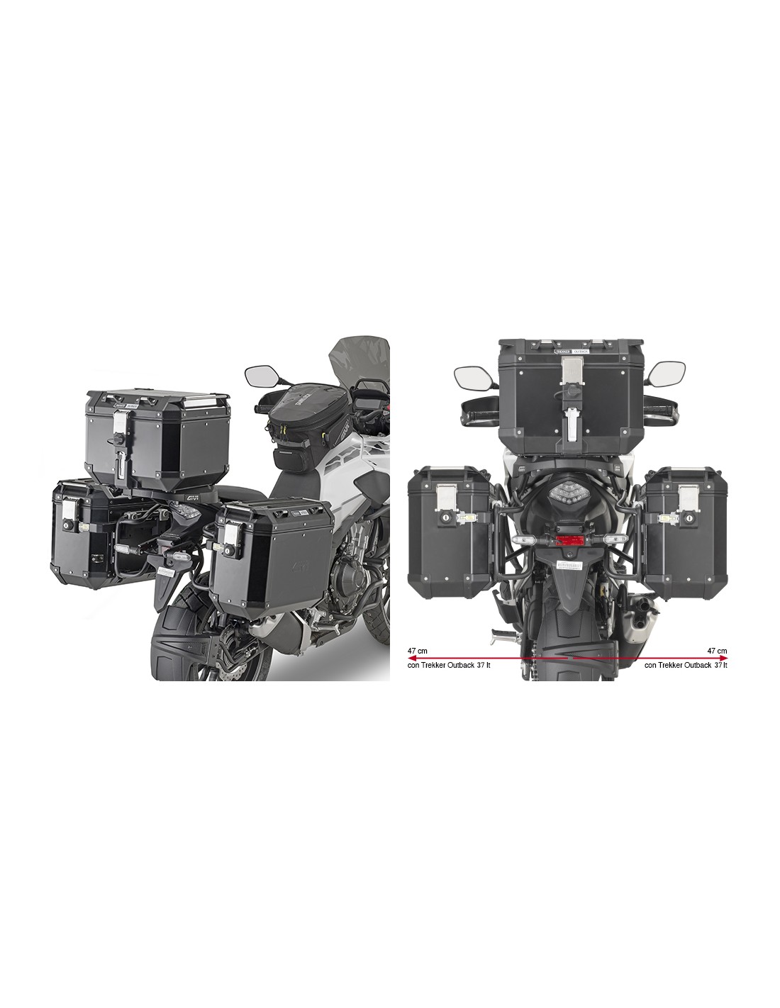 Portamaletas lateral específico PL ONE-FIT configurado para maletas MONOKEY® CAM-SIDE Trekker Outback