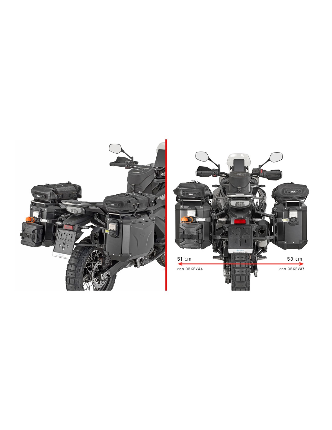 Portamaletas lateral específico PL ONE-FIT configurado para maletas MONOKEY® CAM-SIDE Trekker Outback, o bolsas laterales MONOKEY® CAM-SIDE Canyon