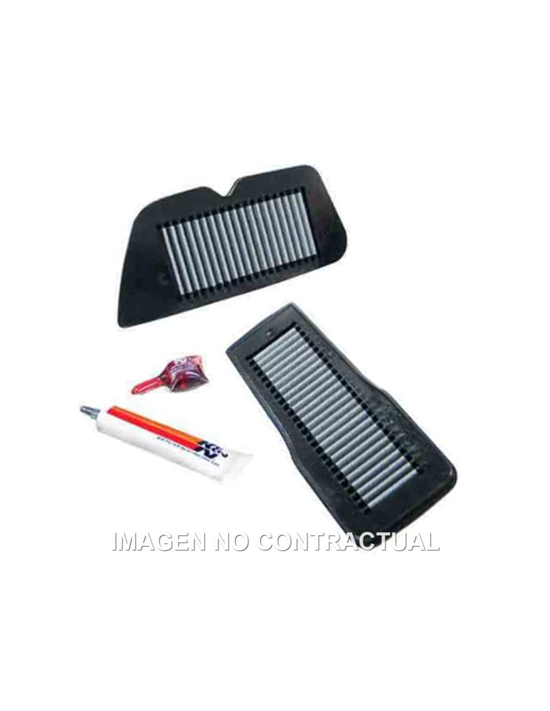 | Contenidos De Paquete | 2 filtros de aire, 1 aceite de filtro K&N de 1/2 oz, 1 grasa de sellado K&N de 1 oz |