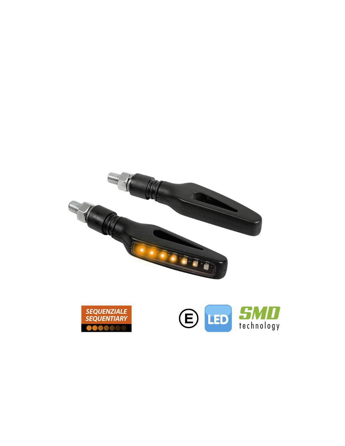 Homologación E. Lente blanca, luz naranja. Cables con conectores rápidos.Saliente con articulación engomada anti-rotura.Elevada resistencia a las vibraciones