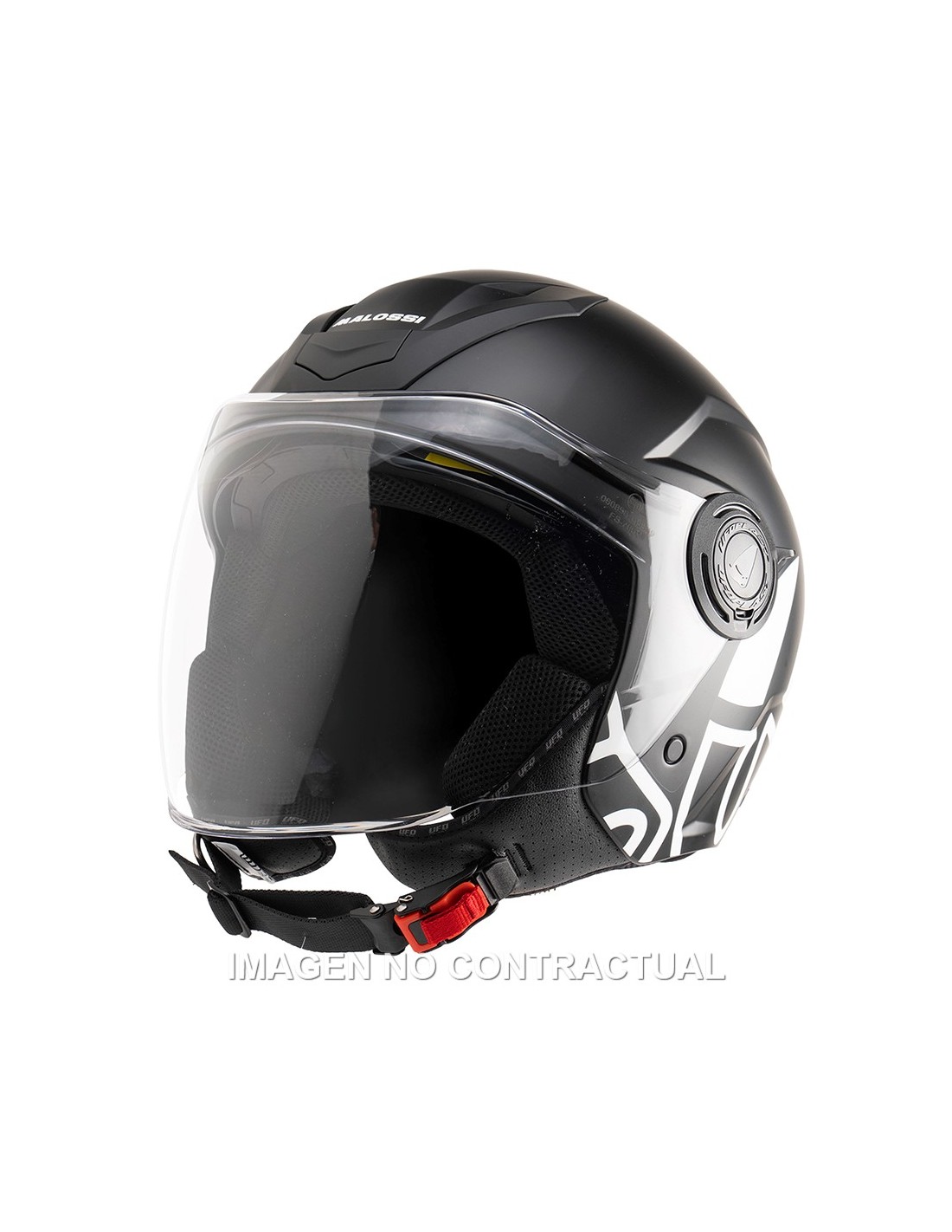 Casco jet fabricado con material termoplástico de alta resistencia, fruto de la colaboración entre Malossi y Ufo Plast.