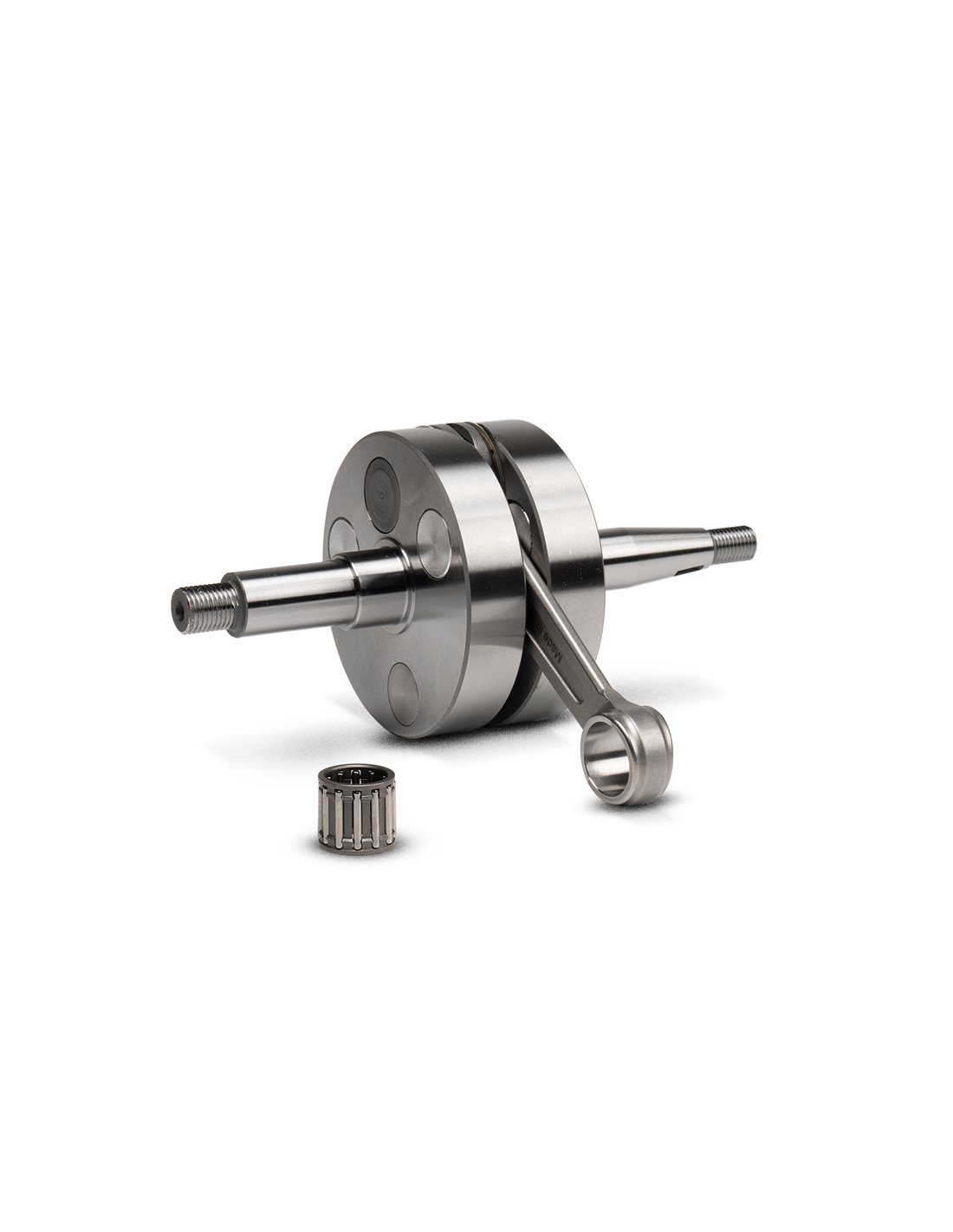 El cigüeñal Malossi para el cilindro 100 cc está compuesto principalmente por dos semiejes de acero especial forjado, mecanizados en máquinas herramienta CNC de alta precisión y luego sometidos a un tratamiento termoquímico de cementación, bonificación y enfriamiento por debajo de cero en nitrógeno. Este proceso confiere a los semiejes una dureza y una resistencia excepcionales, fundamentales para soportar las elevadas potencias generadas por el cilindro 100 cc