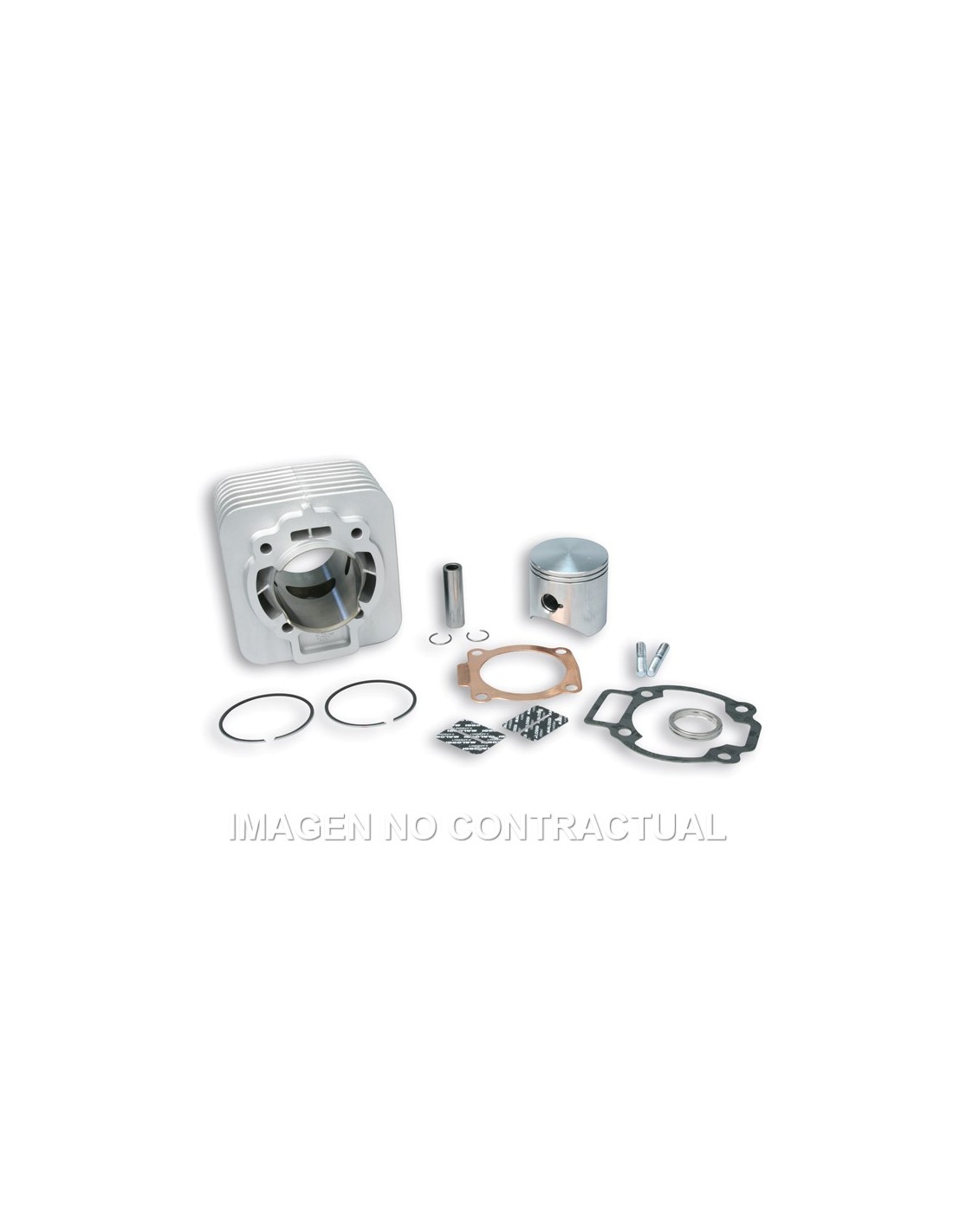 Cilindro de aluminio díametro 65 sin culata (adaptable a la culata original), pistón de diámetro y bulón de 16 mm. Cilindrada: 172 cc.