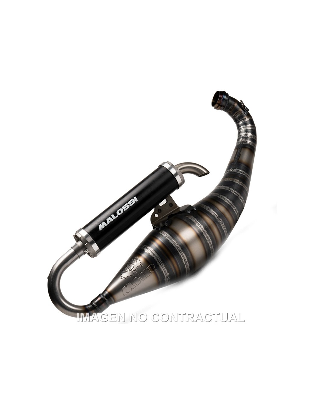 Los silenciadores Scooter Racing MHR de Malossi han sido diseñados y fabricados con un único objetivo: alcanzar las máximas prestaciones posibles en combinación con el cilindro de 100 cc para el que fueron diseñados.
