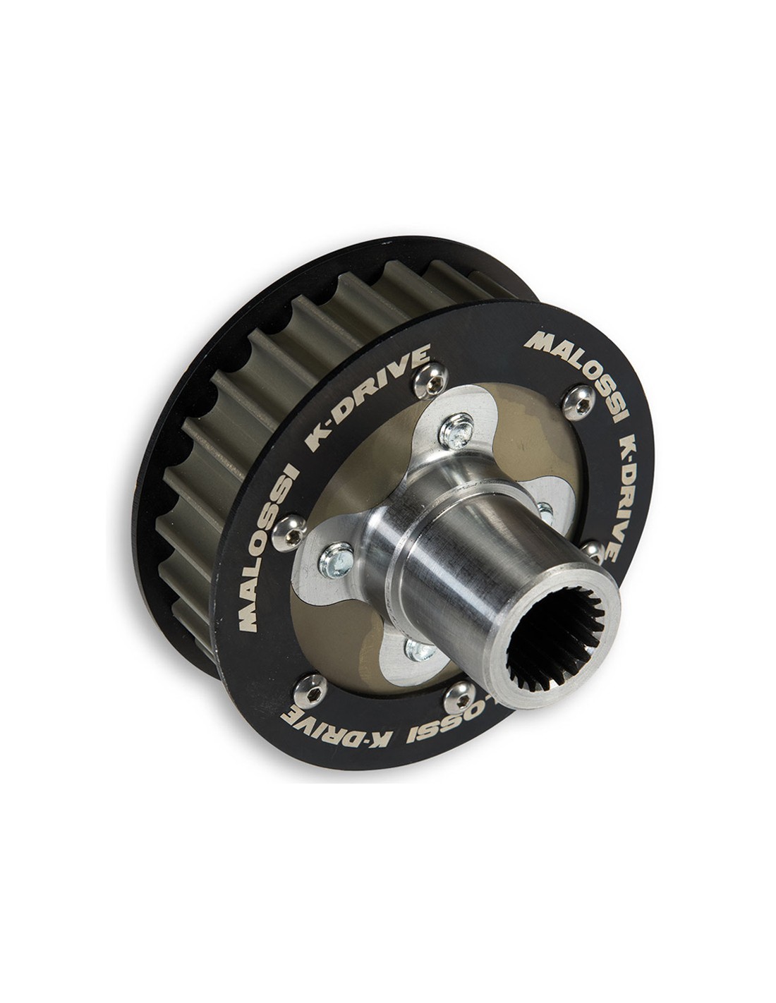 Piñones realizados en aluminio, con un tratamiento de dureza de 25 micron. Con este tratamiento Malossi ha mantenido una geometría especialmente ligera de la pieza garantizando una gran resistencia al desgaste. El buje central está fabricado con un acero aleación especial, sin tratamiento térmico para no aumentar demasiado la dureza y evitar que se creen problemas en el arrastre con el eje de transmisión del motor.