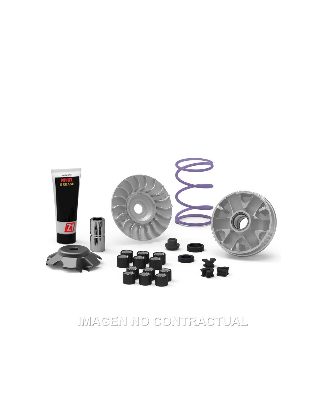 Para cumplir todos los requisitos de las innumerables calibraciones posibles en un vehículo de competición, dependiendo de las pistas y de la puesta a punto específica del motor, Multivar MHR se suministra con dos juegos de kits de 6 rodillos y un muelle de contraste de acero pretemprado unido al Cromo-Silicio con bobinado en sentido antihorario (de competición). Además, hay disponibles diferentes muelles de la misma clase con carga diferenciada como opción